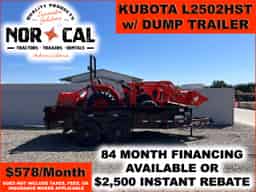 Contact us today to check availability, discuss delivery options, or reserve this Kubota L2502HST tractor and dump trailer package before it’s gone.