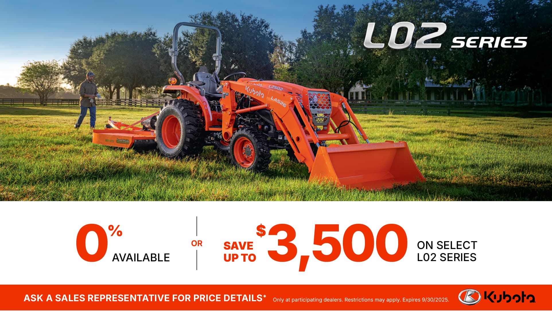 We know that purchasing a tractor is a big investment. That’s why we offer competitive financing through Kubota Credit Corp. Programs often include: